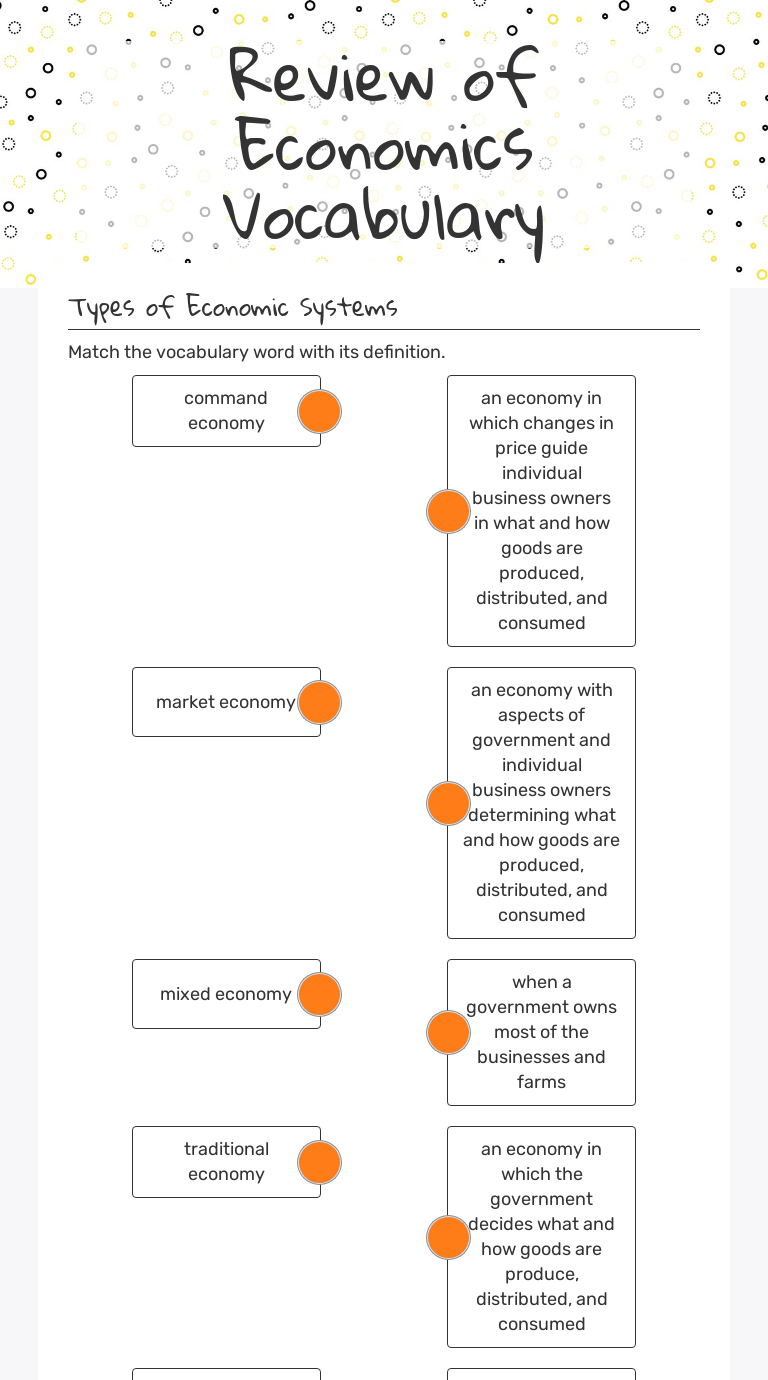Economics Vocabulary Worksheet / 2 :. I have used this with my 2nd year economic students in my reading class. With fluentu, english economics vocabulary will become second nature to you. • expand vocabulary relevant for your studies in business . Students learn about the market economy, comparing free market economies to an actual street market. What are some specific strategies that will help me develop my vocabulary?